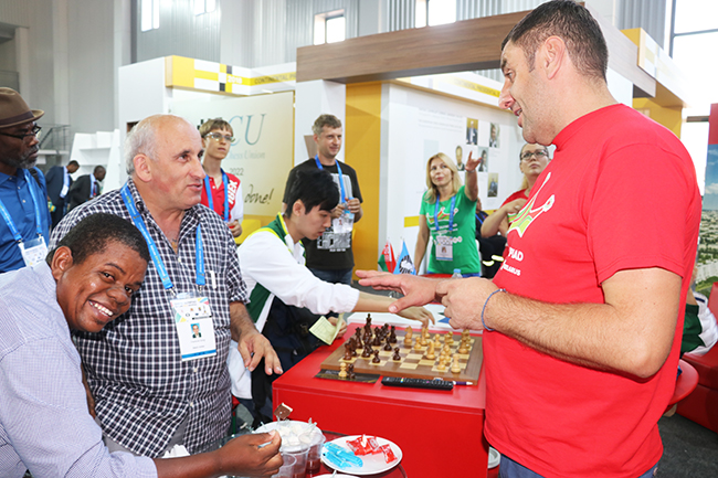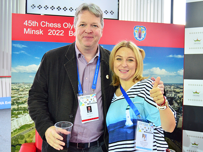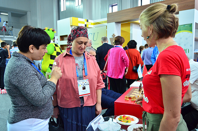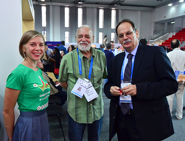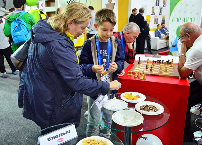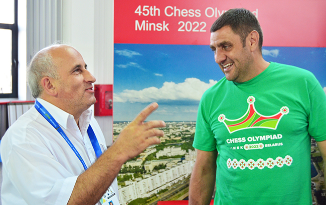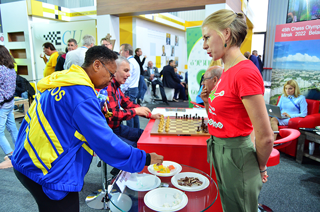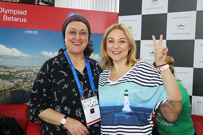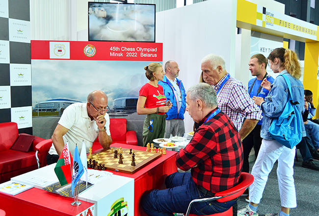 Официально игровых залов на Всемирной шахматной Олимпиаде в Батуми два. Однако есть и третий, в котором также просчитываются ходы и возможные варианты событий. В просторном выставочном зале по периметру расположились различные стенды. Здесь Ханты-Мансийск-2020, предвыборные стенды Аркадия Дворковича, Георгиоса Макропулоса, ЕШС, федерация шахмат Грузии, киоски с шахматной литературой и сувенирами. 3 октября пройдут выборы на пост президента ФИДЕ, 5 октября станет известно, какая страна примет Всемирную шахматную Олимпиаду 2022. Мы очень надеемся, что это будет Беларусь.