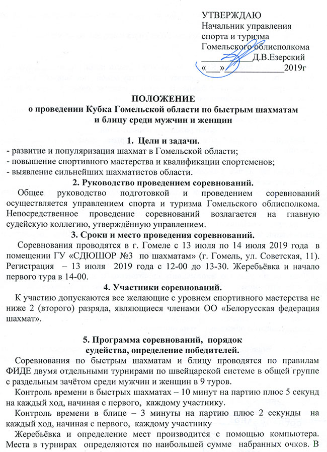 С 13 по 14 июля в Гомеле в помещении ГУ "СДЮШОР №3 по шахматам" пройдет Кубок Гомельской области по быстрым шахматам и блицу среди мужчин и женщин.