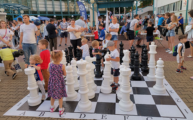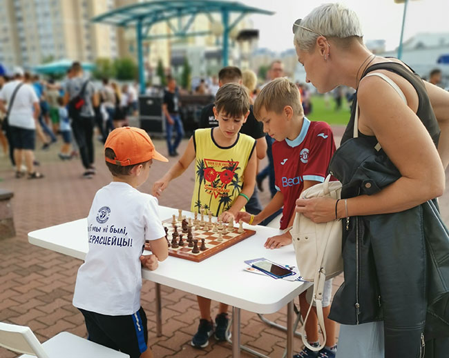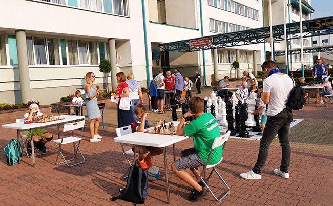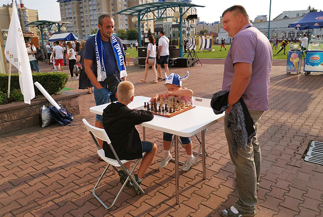 А в фан-зоне болельщиков Динамо-Брест была организована огромная шахматная площадка, где можно было взрослым и детям поиграть в шахматы.