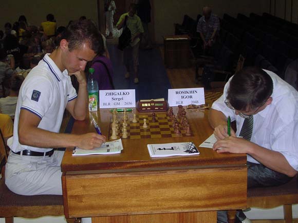Особых проблем у остальных титулованных участников не возникло. Гроссмейстеры и мастера легко разбирались со своими менее опытными соперниками. Методично — как Александр Халифман, технично — как Даниил Линчевский, агрессивно — как Андрей Жигалко, удушающе — как Евгений Мочалов. Или как Юрий Тихонов: зевнул вроде качество — а оказалось, пожертвовал! Ну а пару случайных мастерских ничьих не в счет — спишем на жару.