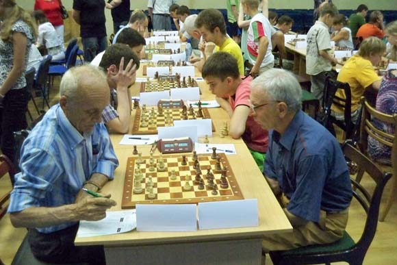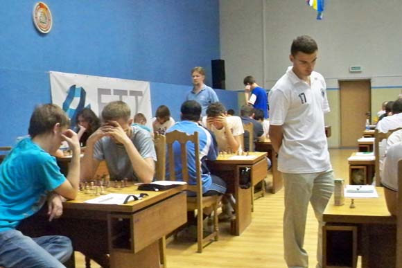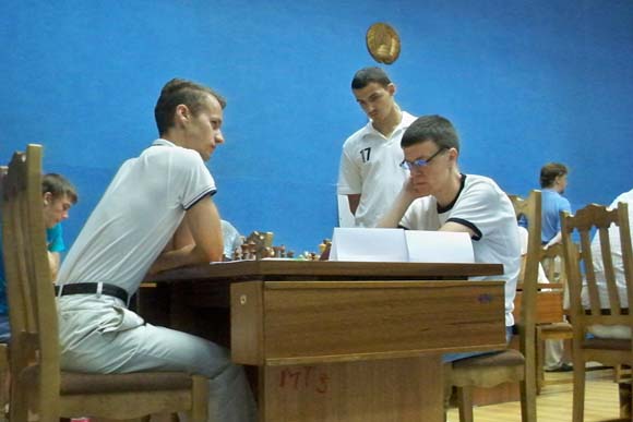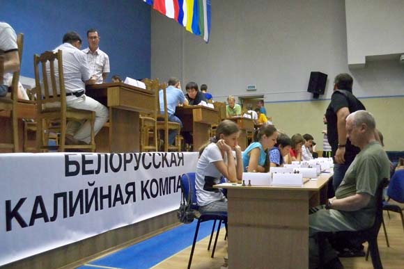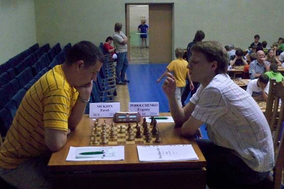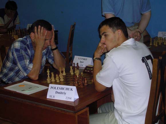 В поисках перевеса Халифман доигрался до такой вот позиции. У черных уже достаточно серьезное преимущество — а потому предложение ничьей от них прозвучало как хороший подарок.Сработала магия имени — напротив же "сам Халифман"! Александр благородно не стал искать в этой позиции того, чего в ней нет — и в гроссмейстерских рядах образовалась первая пробоина. Тут же случилась вторая — уставший Юрий Тихонов не стал играть на победу эндшпиль "ладья против коня" и пешек 3 на 4. Ну а Игорю Люцко просто повезло — в ничейной позиции его соперник Дмитрий Полещук не обратил внимание, что после сделанного хода часы продолжили идти, и просрочил время. А самая серьезная неудача подстерегла чемпиона Беларуси 2010 Евгения Подольченко: