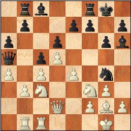Совершенно фантастическая позиция — белые, похоже, не вышли из дебюта. Сейчас решало неожиданное 27 Qc6! И на 28.Qxb3 — dxe3! 29.Rc1 e2+!-+. Сделанный в партии ход 27 Rxd5 перевеса не выпустил, но жизнь черным слегка осложнил. 28.Qxb3 Qe6 29.Rc1+ Kb8 30.Bf4 d3 31.Kd2 g5! 32.Rc5