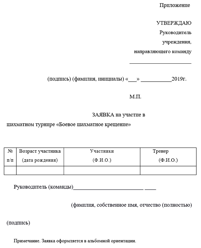 5.2. Заявки отправляйте на e-mail: 5128389@mail.ru по установленной форме (приложение 2) вместе с подтверждением оплаты турнирного взноса.