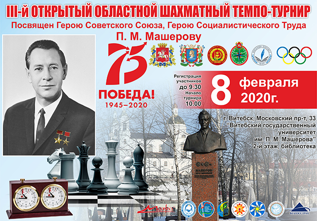 Турнир проводится 08 февраля 2020 г. (суббота), в 10.00. в здании УО «Витебский Государственный университет им. П.М. Машерова», Московский проспект, 33 (центральный вход, 2-ой этаж, библиотека). Регистрация – до 9.30