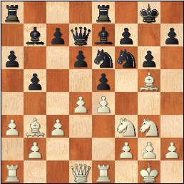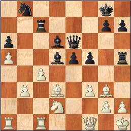 20.e6! Ndf6 21.f5! Красочная позиция! Пешки белых идут "свиньей". 21 g5 22.Ra4?! Стоило посчитать несложное 22.Bxg5! hxg5 23.Nxg5+ Kh8 24.exf7! Qxe2 25.Rxe2 Nc7 26.Ra4! Bh6 27.Rh4 Kg7 28.Ne6+ Nxe6 29.fxe6. Лавина белых пешек сметет на своем пути все. 22 Kg8 23.h4 g4 24.Nh2 Nc7? Зачем-то черные отдают пешку g4. Стоило предпочесть 24 h5 25.Bg5 fxe6 26.dxe6 Nc7 27.Rd1 Rad8, но и здесь после 28.Qc2! d5 29.Ne2! конь белых идет на f4 и черным не позавидуешь. 25.Nxg4 fxe6 26.dxe6 Nxg4 27.Qxg4 Qf6 28.Rf1 Kh8 29.Ne4 Qe5 30.Qg6 d5 31.f6 Rxf6 32.Nxf6 1-0.