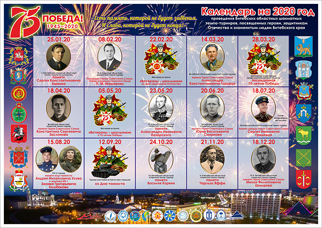 В рамках мероприятий по празднованию 75-летия Победы советского народа в Великой Отечественной войне Витебский областной совет Белорусского общественного объединения ветеранов (БООВ) утвердил согласованный со всеми своими партнерами календарь на 2020 спортивный год проведения Витебских областных открытых смешанных некоммерческих шахматных темпо-турниров.