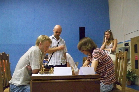 Почему первая? Потому что две шахматистки показали блестящий результат в этом турнире. Очередную важную победу одержала в последнем туре Анна Шаревич — на этот раз ею был повержен Евгений Мочалов.