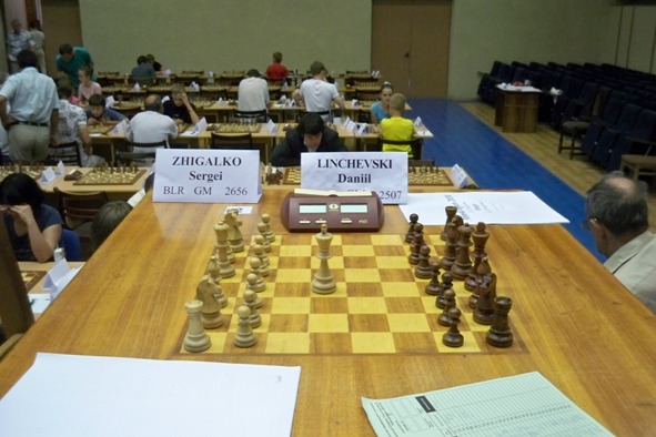 А вот на втором и третьем столиках шла Грюнвальдская битва — никаких ничьих! Достаточно быстро, за три часа, справился со своей нелегкой задачей — обыграл Даниила Линчевского — Сергей Жигалко. Гроссмейстер из Ленинградской области был так расстроен, что даже не стал забирать после партии свой бланк. И не мудрено — ведь он был на пол-очка впереди своего оппонента!