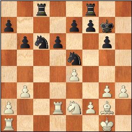 27 Nxa1? Черные простодушно забирают ладью, надеясь выгадать темп нападением на ферзя. А необходимо было найти 27 Qe7! 28.Qxc2 Qxe6 29.Rd3 Qg4+ 30.Kh2 Rae8 31.Bc1 Bh6 с неясной позицией. 28.fxg5!! Как гром среди ясного неба! 28 Nxb3 29.Kg2!! У черных лишний ферзь, ладья и очередь хода. Но чтобы защититься от мата, им надо расстаться почти со всеми фигурами 29 Rf2+ 30.Kxf2 Qg8 31.Rh1+ Qh7 32.Rxh7+ Kxh7 33.Bxb3 a4 34.Be6 Re8 35.Nf4 Re7 36.d5 Na8 37.d6 1-0