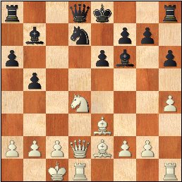 Опытные мастера настолько суровые, что даже и не думают о рокировке. "Наша Раша" отдыхает! 14.Nxe6! Наказание за пренебрежение рокировкой следует незамедлительно! 14 Qc8 15.Bg4?! Правда, уже на втором ходу варианта Лена слегка сбивается с темпа. После 15.Qd6! с угрозой 16.Nс7+ черным уже можно было сдаваться. 15 fxe6 16.Bxe6 Bc6 17.Rhe1 Qb7 18.Bxd7+ Bxd7 19.Bb6+ Kf8 20.Bc5+ Kg8 21.Qxd7 Qxg2 22.Rg1 Qe4 23.Bd4 Qf4+ 24.Kb1 Bxd4 25.Rxd4 Qf7