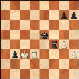 Что говорит теория ладейных окончаний по поводу этой позиции? По крайней мере, белым здесь победить не удалось, хотя спортивное значение этой партии было велико. 41.Rc6 h5 42.h4 Rb4 43.g3 Rb3 44.Kg2 g6 45.Kf2 Kh6 46.Re6 Kg7 47.Rd6 Kh6 48.Rc6 Ra3 49.b7 Rb3 50.Rc7 g5 51.Ke2 gxh4 52.gxh4 Kg6 53.Kd2 Kf5 54.Kc2 Rb6 55.Kc3 Rb1 56.Kc4 Kg4 57.Rd7 Rc1+ 58.Kd5 Rb1 59.Kc5 Rc1+ 60.Kb6 Rb1+ 61.Ka5 Ra1+ 62.Kb5 Rb1+ 63.Kc4 Rc1+ 64.Kb3 Rb1+ 65.Kc3 Kf5 66.Kc4 Ke6 67.Rh7 Kd6 68.Rh6+ Kc7 69.Rxh5 Rc1+ 70.Kd5 Kxb7 71.Rh7+ Kc8 72.h5 Kd8 73.Ke6 Re1+ 74.Kf6 Rf1+ 75.Kg6 Ke8 76.Rh8+ Rf8 77.Rh7 Rf1 78.Rg7 Kf8 79.h6 Rg1+ 80.Kh7 Rf1 81.Rg5 Kf7 1/2-1/2