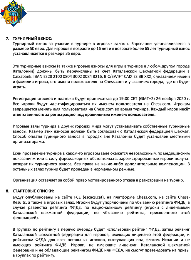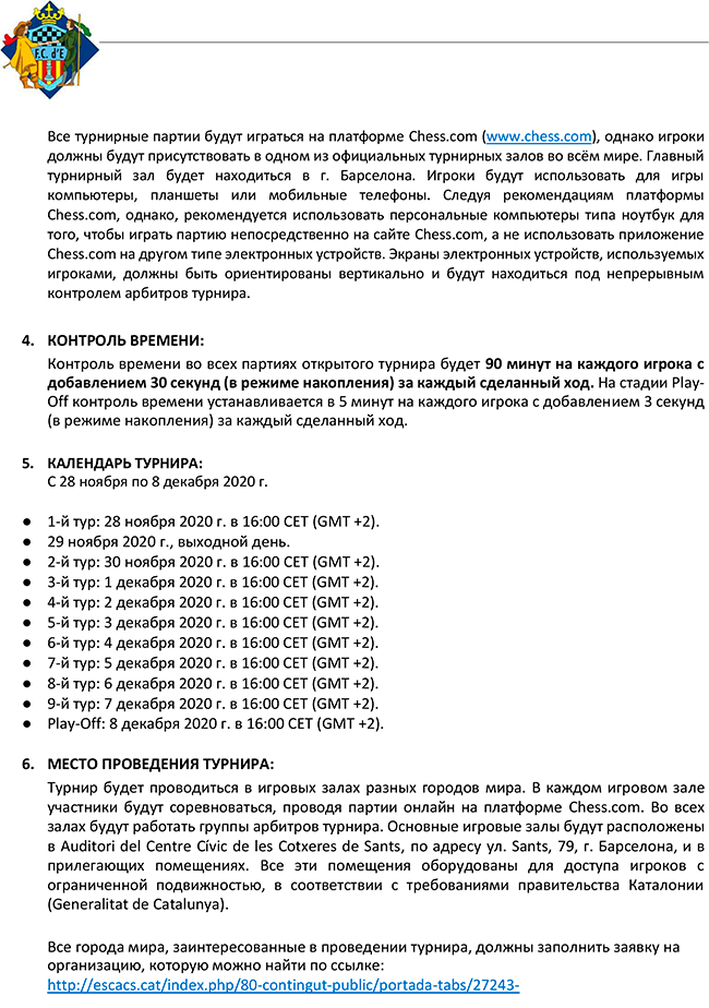 С 28 ноября по 8 декабря на шахматной платформе Chess.com под эгидой Каталонской федерацией шахмат пройдет открытый онлайн турнир the Barcelona world E-chess open – Ciutat de Barcelona.