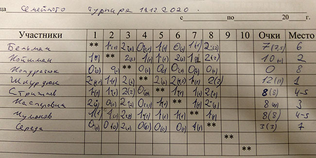 Семейный шахматный турнир.