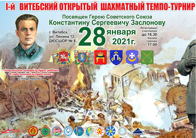 Перед началом турнира зам. председателя Витебского областного совета БООВ М. Лещинский кратко рассказал о биографии К.С. Заслонова, который родился 07 января, поведал о связи его самого и семьи не только с Оршей, но и с Витебском, обстоятельствами гибели и подвиге Героя. Турнир прошел в девять туров с укороченным контролем времени (четыре минуты с добавлением пяти секунд на сделанный ход). Дружественное соприкосновением шахматистов локтями при приветствии друг друга сразу же сменилось расталкиванием локтями в борьбе за место в турнирной таблице и многим сразу стало очень жарко. Надетые на лицо маски, под которыми игроки прятали свои замыслы и домашние заготовки, не смогли скрыть, уже совсем скоро, отсутствие на данный момент у очень многих шахматистов игровой практики и потерю игрового тонуса в условиях затянувшегося на полгода карантина. Об этом свидетельствовали частые зевки фигур, даже ферзей, неумение выбраться из цейтнота, из-за чего иные в один ход проигрывали начисто выигранные партии. Вывод один – нужно больше играть и не позволять себе значительно или почти полностью деквалифицироваться из-за длительных перерывов. В одинаковых для всех условиях сказались мастерство и более сильные нервы у опытных и маститых игроков.