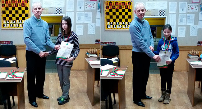 1 место - Рабковская Екатерина, Глубокое с результатом 6,5 из 7 очков (тренер Синькевич В.Г.)