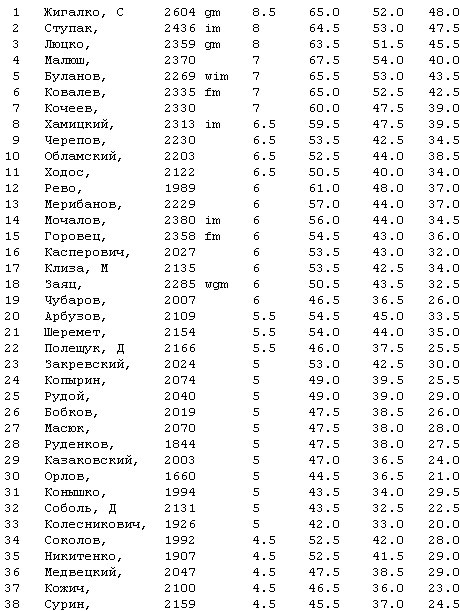 На втором месте не менее стабильный международный мастер Кирилл Ступак — 8 из 10. На третьем — вновь набирающий форму международный гроссмейстер Игорь Люцко.