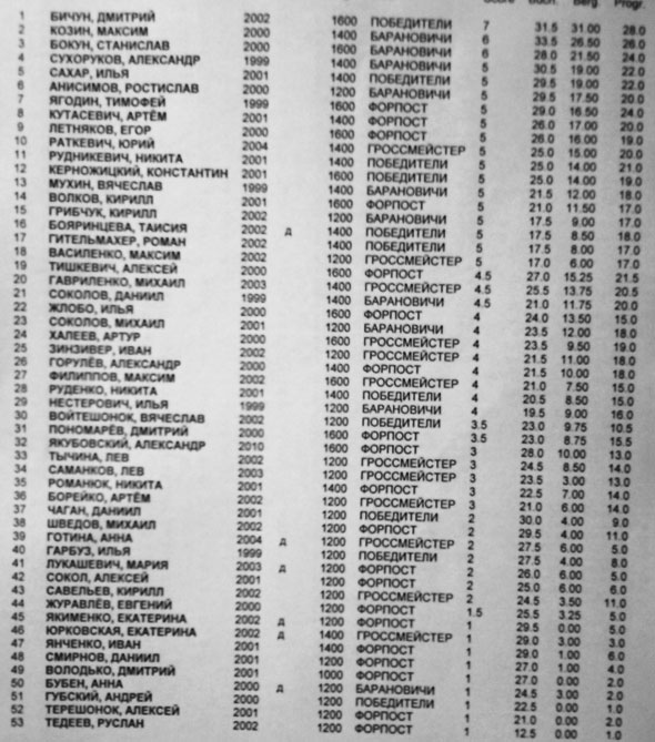 первую тройку дополнили Максим Козин и Станислав Бокун (оба — ДЮСШ№1 г.Барановичи).