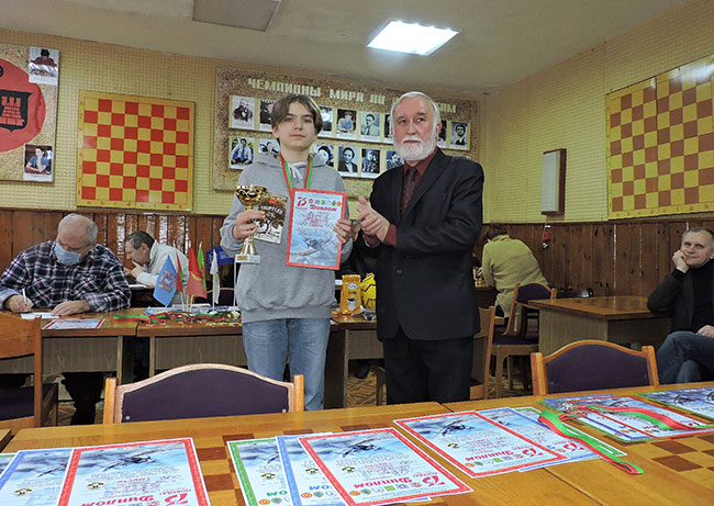 Одновременно с ними в смешанном формате состязались ветераны, любители, женщины, шахматисты сельских районов, школьники и дети. Турнир прошел в 9 туров с укороченным контролем времени – пять минут каждому на партию, плюс 3 добавленные секунды за каждый ход, с определением лучших в семи номинациях. Победителем главной номинации с прекрасным результатом 8 очков из 9 стал ученик 8 класса СШ № 13 г. Орша Михей Науменко, не проигравший ни одной партии и, сделавший в конце турнира две ничьи.