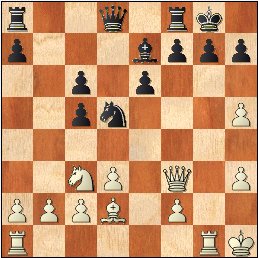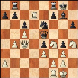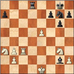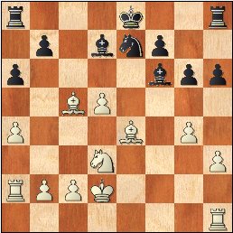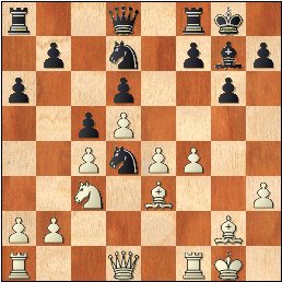ef с небезвыгодными для черных разменами. 18.f5 g5. Королевский фланг закупорен, а в центре некоторое преобладание черных за счет полуоткрытой линии "d". 19.Nb1 Rhe8 20.Nd2 Bf8 21.Nf3 Nb6 22.Kb1 Qe7 23.c3 Rd7 24.Bg1 Na8 25.Rfe1 Nc7 26.Qc2 Red8 27.Bh2 Qe8 28.Rd2 Nb5 29.Red1 Bd6 30.Qa4 Kb8 31.Qc4 b6 32.a4 Nc7 33.Re2 Kb7 34.Rc1 Re7 35.Qb3 Na6 36.Nd2 Bc7 37.Re3 Red7 38.Qc2