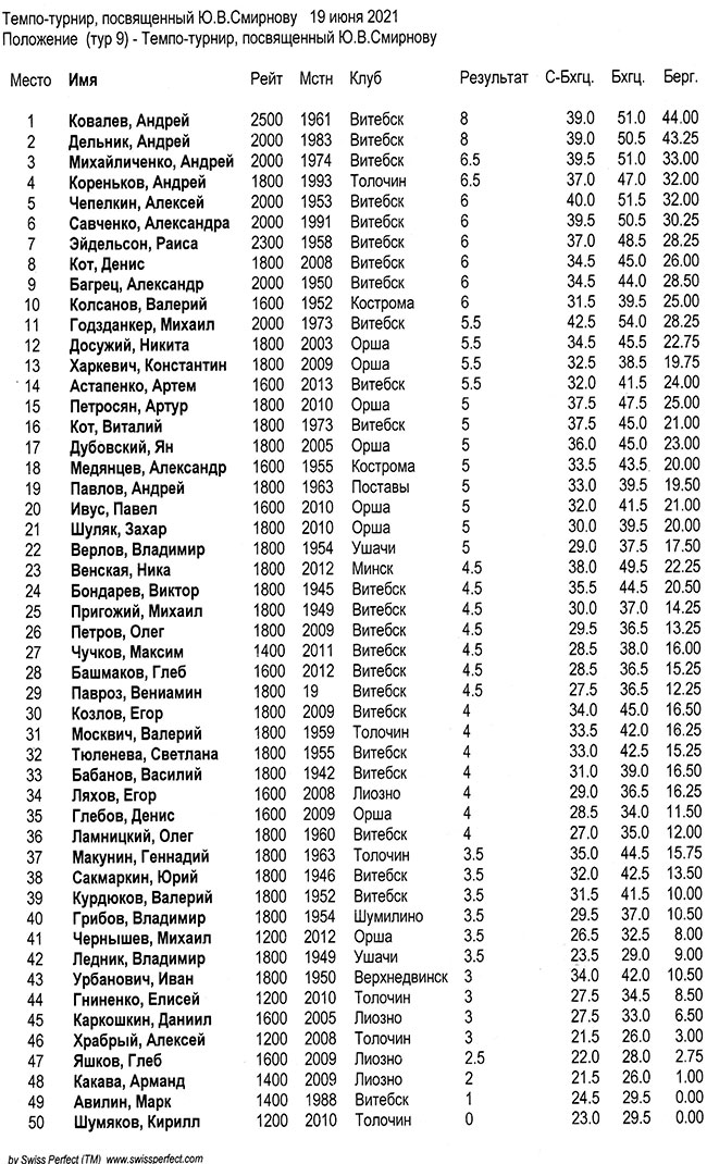 Для организаторов турнира важно было участие земляков Юрия Смирнова, шахматистов из неблизкой Костромы. Дебют наших гостей прошел вполне успешно, в компании рейтинговых игроков они сражались на равных. Небезынтересно будет узнать, что Валерий Колсанов в прошлом работал заместителем губернатора Костромской области и продолжает играть в шахматы в местных соревнованиях. Помимо участия в турнире наши гости посетили памятные места, связанные с увековечением своего земляка, Юрия Васильевича Смирнова на Витебщине и выразили нам свою признательность по поводу увиденного. Очень важно, что встреча состоялась накануне 22 июня, трагической даты в истории нашей страны, начала великой Отечественной войны, в канун даты (25.06) мученической смерти от рук палачей и подвига Юрия Смирнова, дней освобождения от немецко-фашистских захватчиков многих населенных пунктов Витебской области.