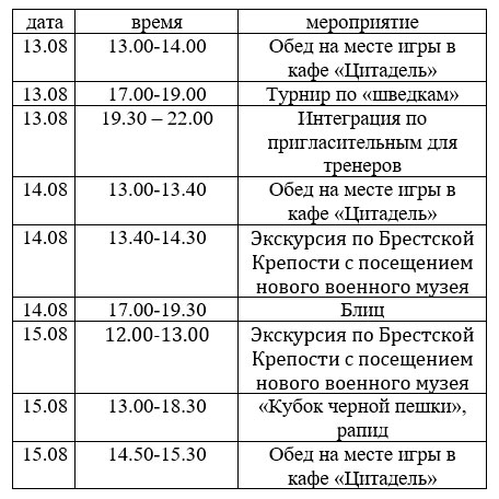Предварительная регистрация участников до 11.08.2021 г. на эл. адрес: brestchess@tut.by с пометкой «ПРБ».
