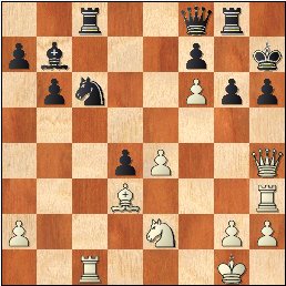 Qf6! Белые фигуры оказывались в клубке, который трудно было бы распутать. Ферзь брал на прицел пешки с3 и f4 и не давал королю уйти на f3 из-за Nе5+. После примерного 23.Rb7 Nb6 24.Rg1 Na4 25.Be1 Qxf4 26.g4 у черных оставалась сильная атака при равном материале. 23.Kf3 Ne4 24.Nxe3 Qf6 25.Re1 h5? Окончательно губит партию И снова надо было активизировать ферзя! 25