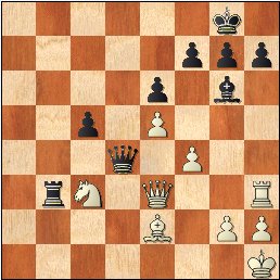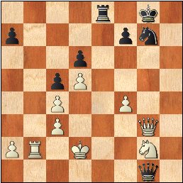 Qb8 35.Ne3 Rxa3 36.R1d6 Ra1. Причем здесь у белых находилась красивая ничья — 37.Nf5+ gxf5 38.Qh6+ Kxh6 39.Rxf6+ Kh7 40.Rfxf7+с вечным шахом. 35.Ne3 Rxa3 36.R1d6 Ra1 37.Qd2 Qb6 Финальную комбинацию экс-белорус находит легко. 38.Rxf6! Kxf6 39.Nf5! Мат неизбежен. 1-0.