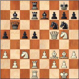 Bxd5! 19.Qxd5 Nb6 20.Qd2 c4! Странная позиция. Вроде у белых лишняя фигура и очередь хода, и со стороны черных не происходит никаких шахов, но тем не менее белые так неудачно расставились, что им и фигуру не сохранить, и где-то уже спасение искать надо