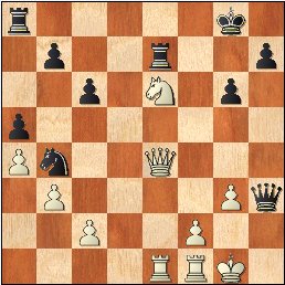 и эту позицию гораздо приятнее играть черными. А в партии черные быстро проиграли: 26.Bf2 h4 27.g3 Nh5 28.Ng4 Ng5+ 29.Kg2 Qxf4 30.Rxe8+ Rxe8 31.gxf4 Nxf4+ 32.Kf1 Nxd3 33.Nf6+ Kf8 34.Nxe8 Nxb2 35.Nxd6 h3 36.Bxc5 Nf3 37.Kf2 Nxh2 38.Kg3 Nf1+ 39.Kxh3 Kg8 40.Ne4 1-0