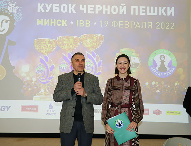 Многочисленных гостей и участников соревнований приветствовали председатель ОО "БФШ" Сергей Сычук и неизменный организатор и вдохновитель "Черной пешки" Екатерина Таберко.