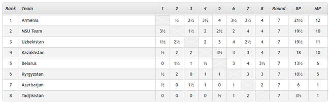 В Москве завершился международный университетский командный турнир на кубок Московского государственного университета им. М.В.Ломоносова в котором принимали участие 8 приглашенных команд университетов разных стран: России (команда МГУ), Республики Беларусь (БГУ), Армении, Азербайджана, Узбекистана, Казахстана, Таджикистана и Киргизии...