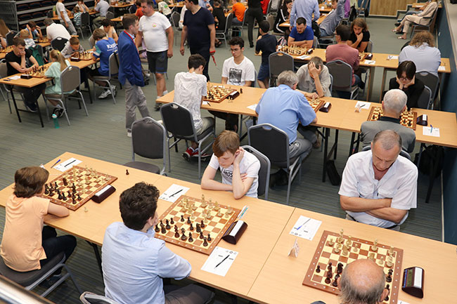 Главный судья соревнований международный арбитр Игорь Стрелец акцентировал внимание на основные пункты регламента турнира и ровно в 15.30 стартовал первый тур.