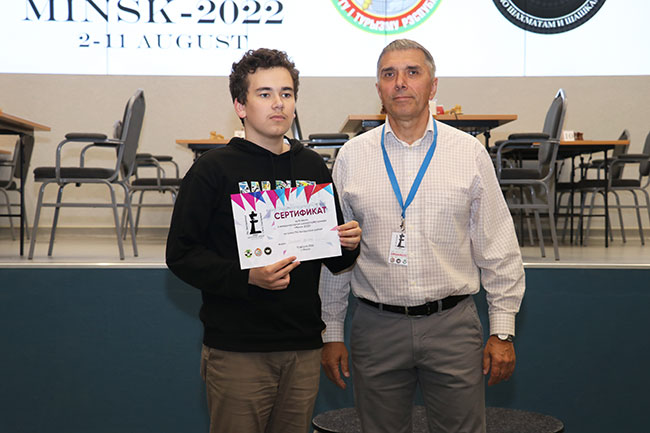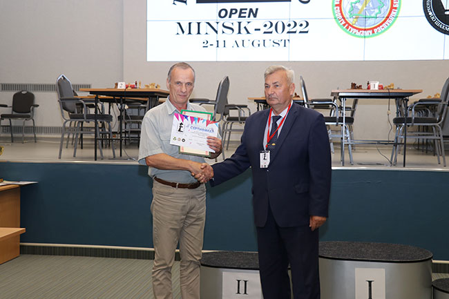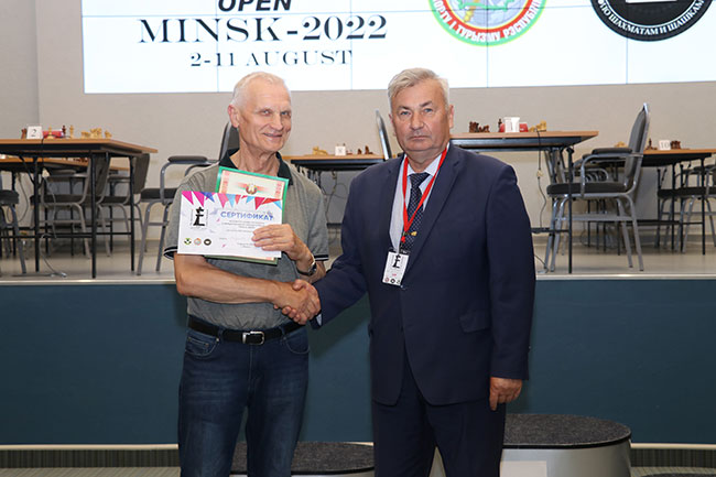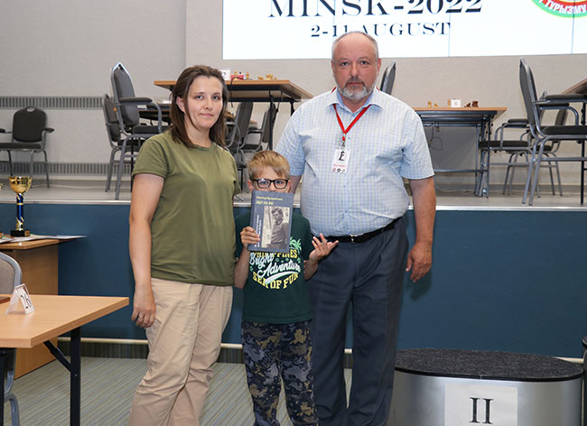 По сложившейся традиции минских опенов ОО "БФШ" дарит памятные сувениры самому младшему участнику соревнований. На "Минск-2022" - это Лев Сивко (8 лет).