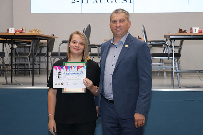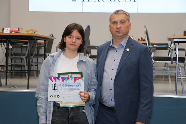 Специальный приз за 1 место среди юношей до 18 лет достался Ксении Норман. Такое бывает только в шахматах!