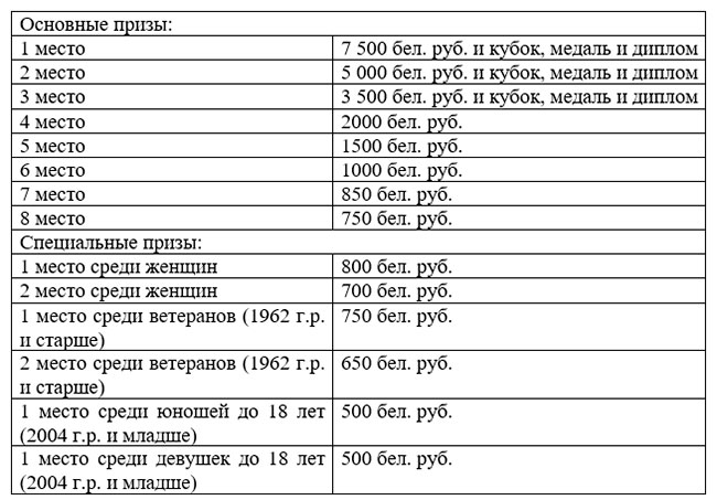 Дополнительные специальные призы устанавливаются при участии в каждой категории не менее пяти участников.