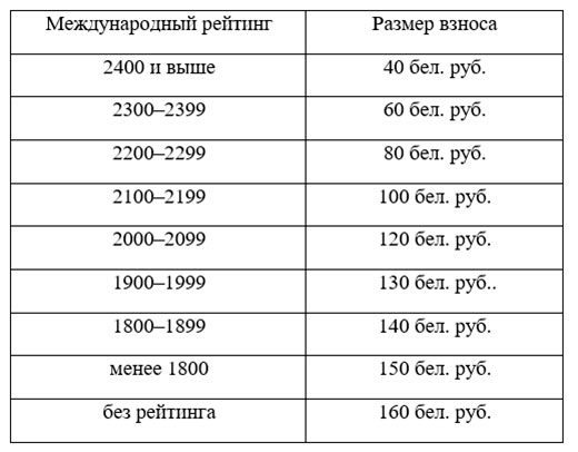 Оплата турнирного взноса производится в белорусских рублях на расчетный счет общественного объединения ”Белорусская федерация шахмат“: