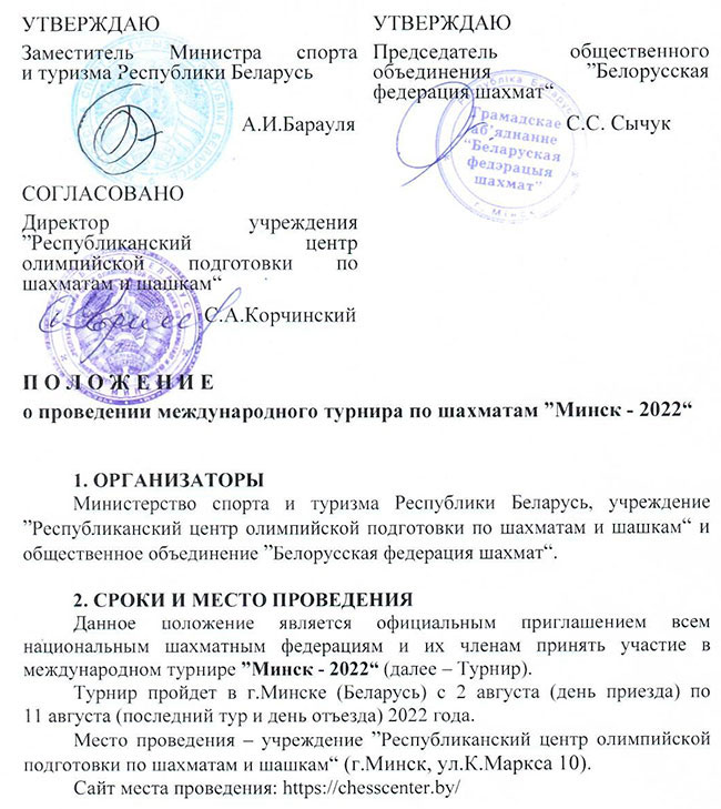 02 - 11 августа 2022, г. Минск, РЦОП по шахматам и шашкам.