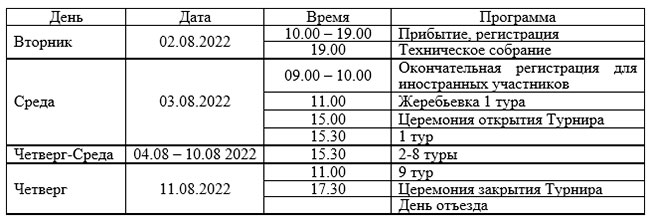 Крайний срок регистрации – 27 июля 2022 года. Все игроки должны иметь ID FIDE. В случае отсутствия такового, обращаться за получением в свою национальную федерацию шахмат.