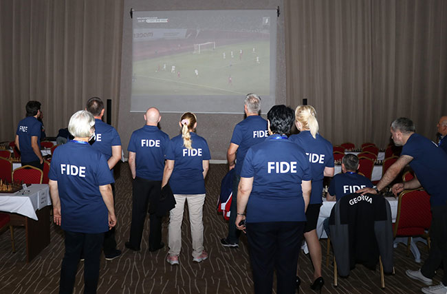 После тура в большом зале массово смотрят футбол с участием грузинской сборной.