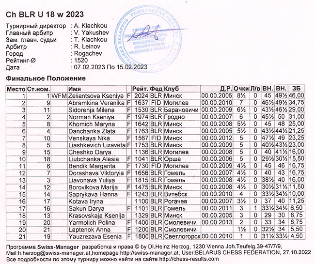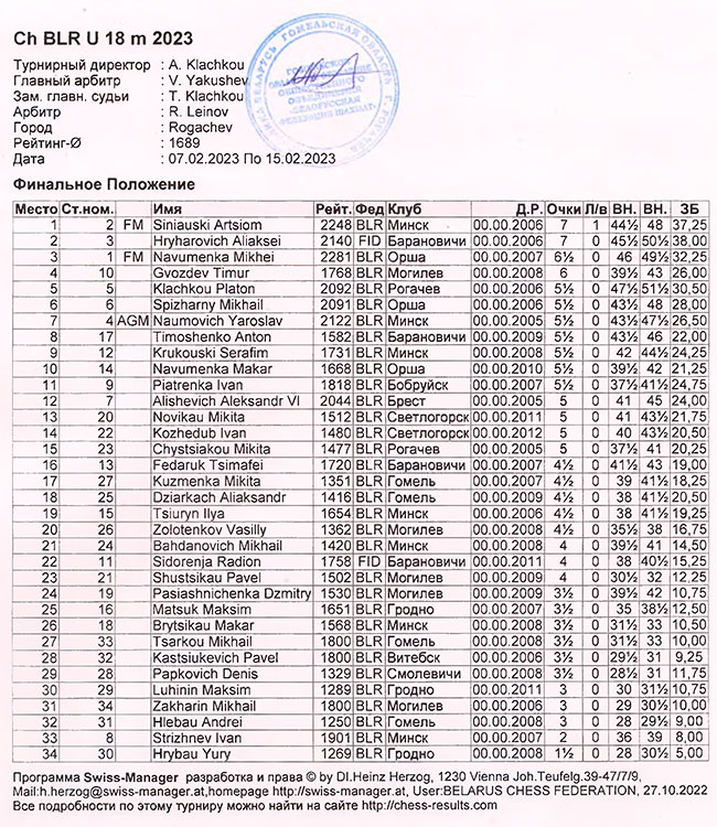Компьютерная жеребьевка осуществляется программой Swiss-Manager.