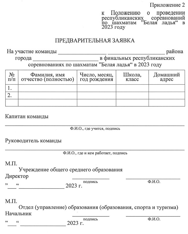 Положение о республиканских соревнованиях по шахматам на 2025 год