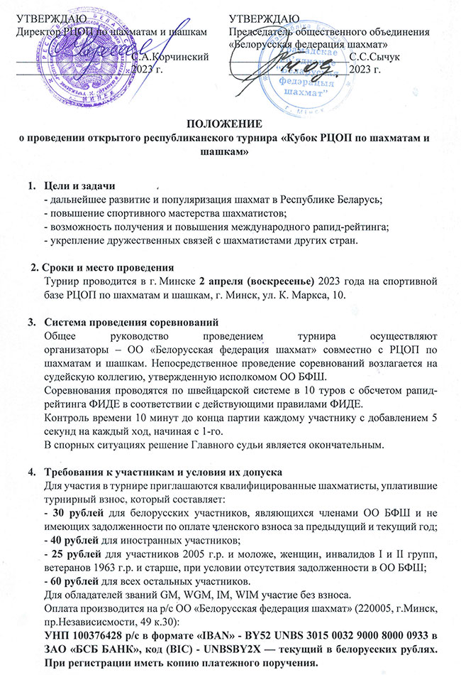 Белорусские шахматисты, не являющиеся членами ОО БФШ или имеющие текущую задолженность по уплате членских взносов, в распределении призов не участвуют.