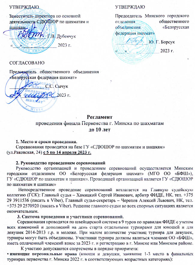 Заявки на участников подаются в ГСК на бумажном носителе или на электронную почту minskchess@outlook.com до 16.00 4 апреля. Заявка от организаций должна быть подписана руководителем организации и заверена печатью. Организация несет ответственность за достоверность предоставляемых сведений. Законные представители участников (участники), которые заявляются лично, несут ответственность за достоверность предоставляемых сведений.