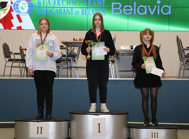 Первое место у девушек по дополнительным показателям заняла Александра Тарасенко (7 очков). Серебряная медаль у Ксении Норман (7 очков). Бронза - у Юлии Леоновой (6 очков). Кроме призеров соревнований денежные сертификаты от ОО "Белорусская федерация шахмат" получили Ксения Зеленцова (4 место, 6 очков) и Вероника Абрамкина (5 место, 5 очков).