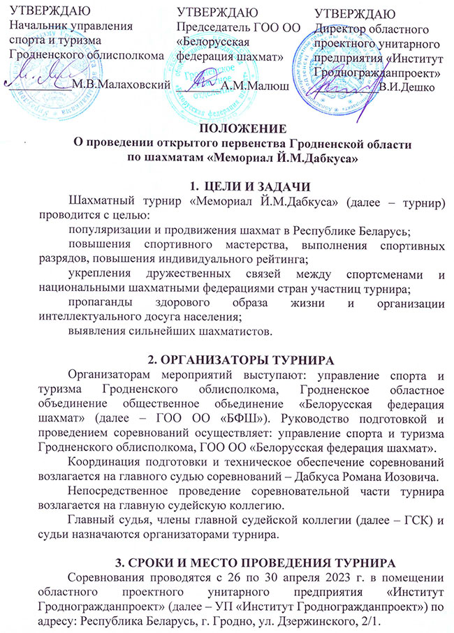 Гродненское областное отделение Общественного Объединения «Белорусская федерация шахмат» ул. Ожешко, 19, г. Гродно, 230023 тел. (0152) 72 31 15, р/с BY10MMBN30153000000101502773, УНП 500842843 ГОУ ОАО «Банк Дабрабыт», ул. Б. Троицкая, 1
