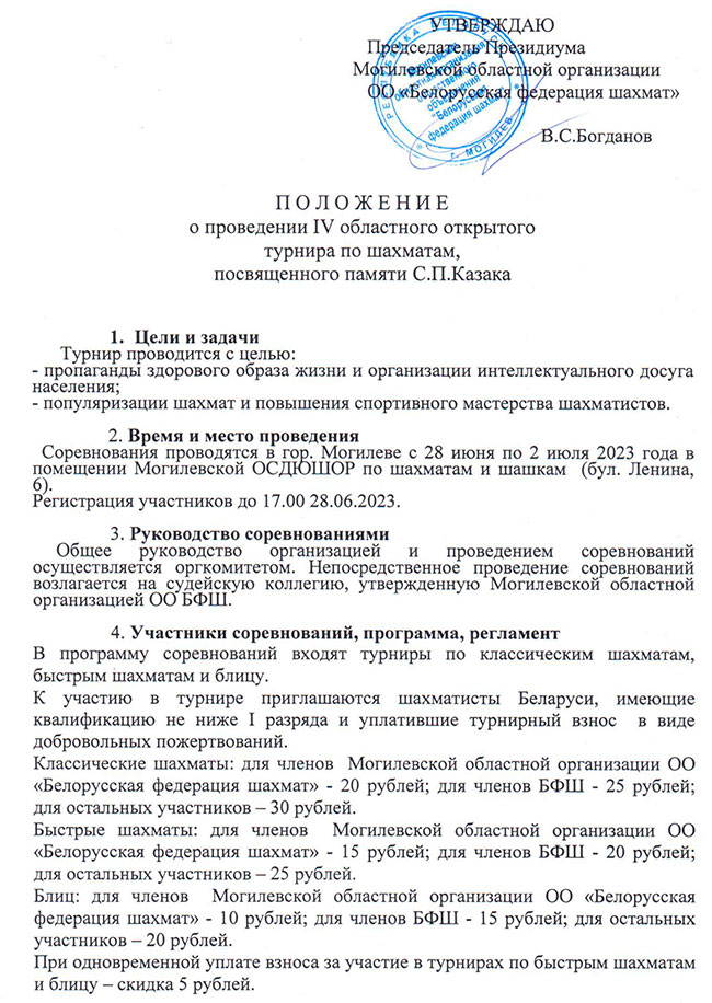 Положение о республиканских соревнованиях по шахматам на 2025 год