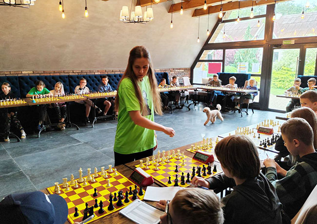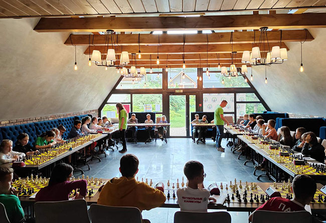 На базе отдыха "Формат" в Брестской области состоялся двойной гроссмейстерский сеанс одновременной игры с Анастасией Зезюлькиной и Юрием Тихоновым на 34 досках.