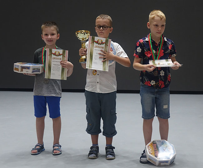 Юноши до 8 лет: 1 Ян Мулица (Кобрин), 2 Роман Гвоздев (Борисов), 3 Павел Поух (Минск, "Шахматный дом").