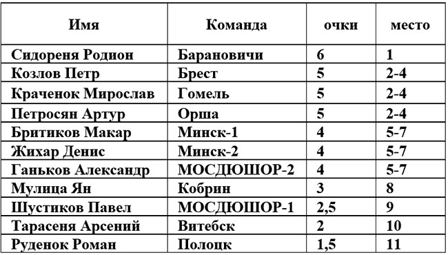 Команда МОСДЮШОР-1 - победители соревнований. На втором месте - столичная СДЮШОР-1, на третьем - ДЮСШ №1 (Барановичи).