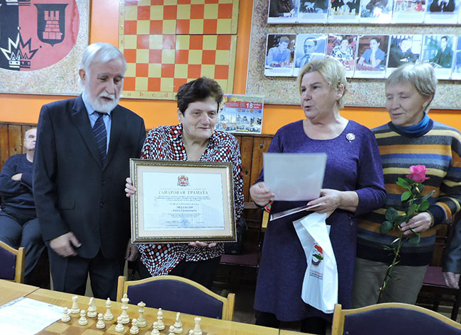 Чтобы поздравить юбиляра на турнир пришли многочисленные воспитанники ее шахматной школы и поклонники, представители общественных организаций. Перед началом турнира юбиляру была вручена Почетная грамота Витебского областного Совета депутатов, как записано в ней: «За добросовестный труд, значительный личный вклад в развитие физической культуры и спорта страны, содействие в подготовке спортсменов высокого класса, активное участие в общественной жизни и в связи с 65-летием». Ее поздравили также шахматисты и представители общественных организаций. После награждения юбиляра и приветствий в ее адрес состоялся темпо-турнир по быстрым шахматам в 9 туров с контролем времени 5 минут + 3 секунды на ход.